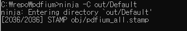 다 만들어졌으면 "cd pdfium" 을 쳐서 폴더 안으로 들어간다.