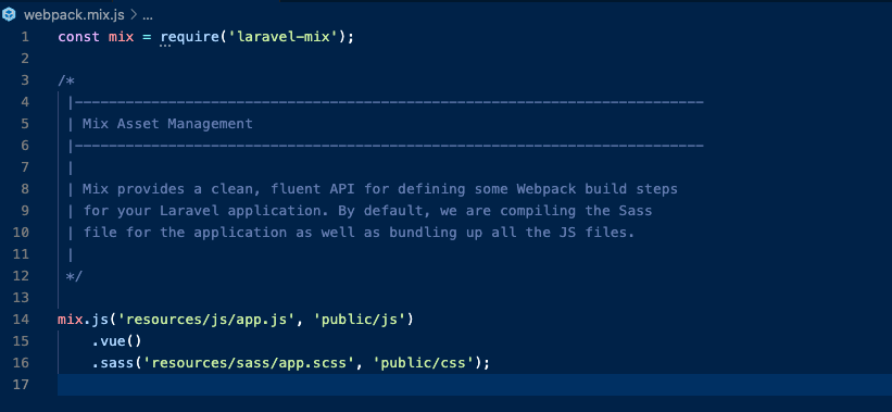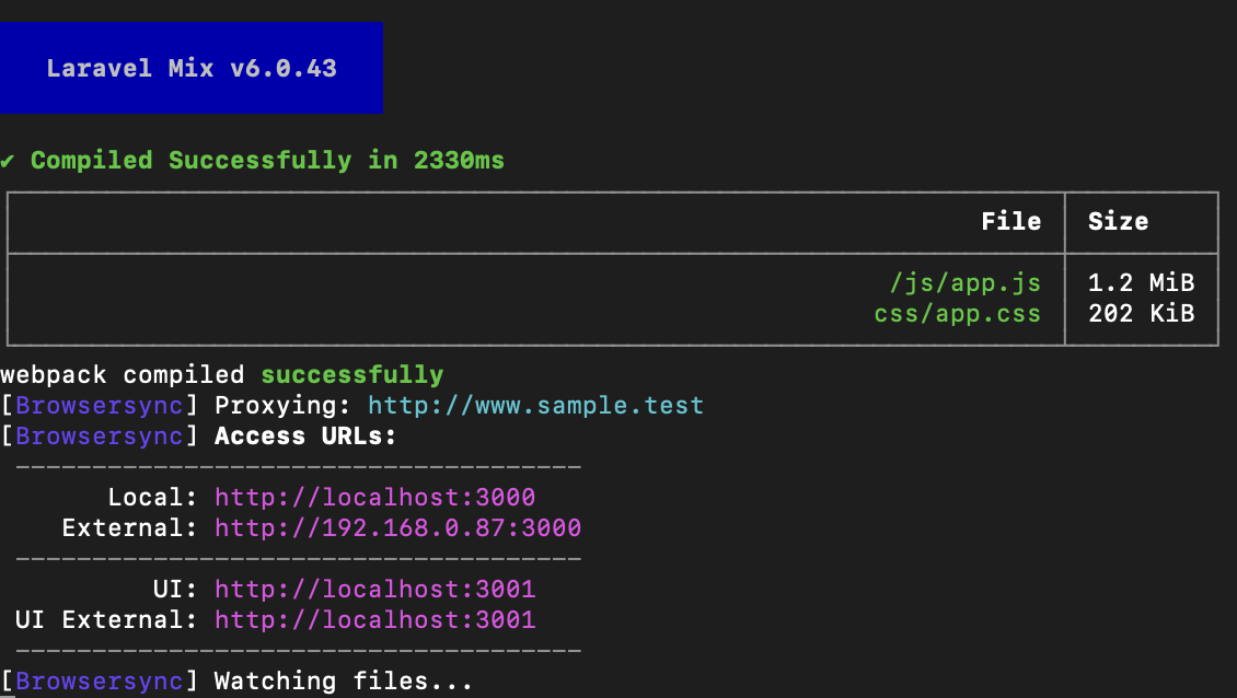 가장 먼저 할 일은 webpack.mix.js 파일을 찾아 browserSync 항목을 추가한다.