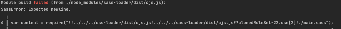 Webpack 에서 뭔가 빠진것이 있나 해서 열심히 SASS 관련 rule 의 옵션 값을 만져봤지만, 옵션과는 관계가 없는 건지 똑같은 에러만 뱉어내는 것이다. 그러다가 구글링하여 찾아낸 방법이,