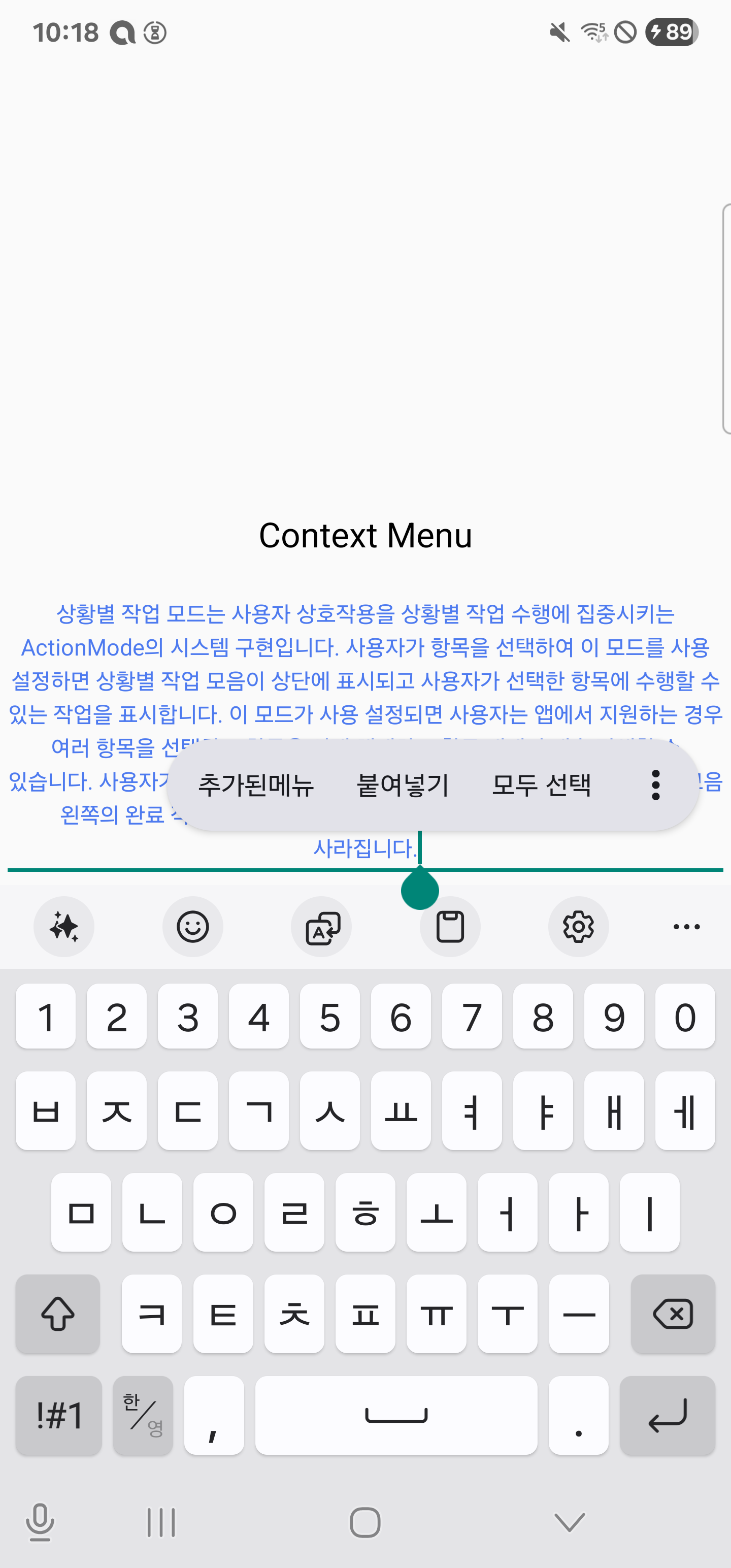 이번 주제는 ActionMode.Callback 를 통해 "잘라내기", "복사", "붙여넣기" 기능을 커스터마이즈 하거나, "메뉴 추가" 그리고 기타 내용에 대해서 알아보려고 한다.
